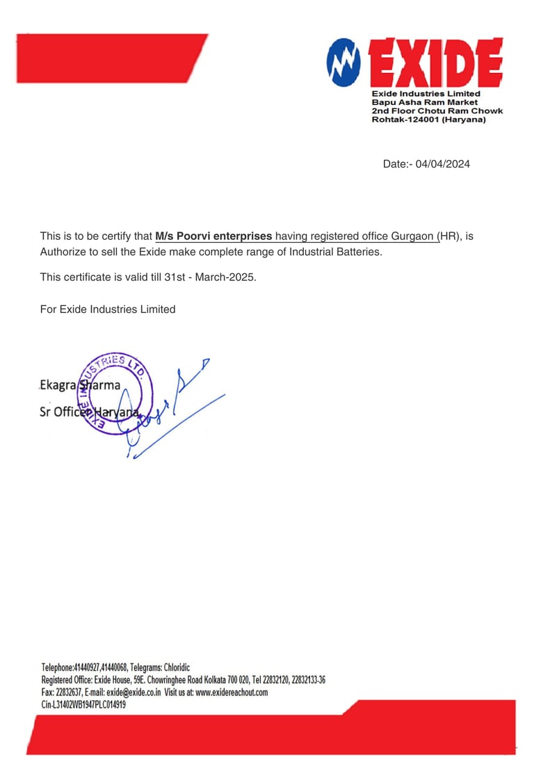 Welcome to Poorvi Enterprises, a trusted name in providing high-performance battery solutions in Gurugram, Haryana. We specialize in offering a wide range of reliable batteries for automobiles, inverters, and industrial applications to meet diverse power needs. With a strong focus on quality, durability, and performance, we ensure our products deliver long-lasting efficiency. Our expert team is dedicated to guiding customers in choosing the right battery solutions for optimal results.